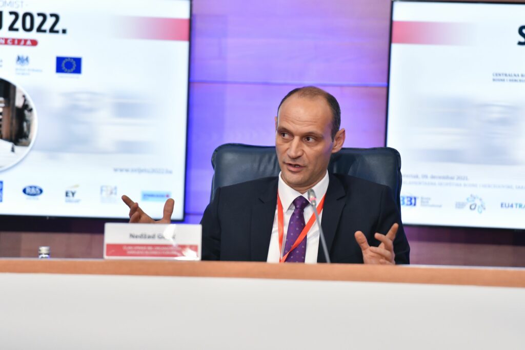 “Poremećaji u lancu snabdijevanja u mnogim segmentima proizvodnje, kao i dostupnim izvorima energije kreirali su pritisak na cijene energenata i energije i usporile put finalnog proizvoda do kupca, odnosno potrošača na način na koji se to odvijalo u predpandemijskom vremenu. Upravo ovo ključni je izazov u vremenu ispred nas i imat će značajan utjecaj na svjetska ekonomska zbivanja. Mnoge Evropske kompanije danas razmišljaju o izmještanju proizvodnje u Evropu, i to na geografski bliže destinacije. Bosna i Hercegovina kroz koncept nearshoringa traži svoju šansu za privlačenje stranih nvesticija, a u ovom procesu svi učesnici mogu imati koristi. Kompanije iz Evropske Unije prenošenjem proizvodnje u BiH svode na minimum rizik ponovnog poremećaja u lancima snabdijevanja. Upravo tu, BBI banka prepoznaje šansu za razvoj bh. ekonomije i stoga ćemo na 11. SBF, osim tradicionalno prisutnih investitora iz Golfskog zaljeva i ostatka Azije, pozvati evropske multinacionalne kompanije koje bi sa domaćim privrednicama kreirale nove poslovne dogovore, uspostavile saradnju na principu joint venture, otvorile nove fabrike u našoj zemlji ili povećale proizvodne kapacitete postojećih fabrika“, kazao je između ostalog Gušić. Dodao je kako su potencijali „nearshoringa“ usko i direktno vezani za povećanje direktnih stranih investicija (FDI) i povećanje investicija u javni sektor, kojim bi se, smatra, povećala zaposlenost i zaustavio negativan trend odlaska radno sposobnog stanovništva.