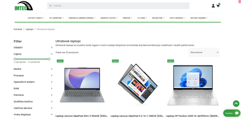 Bosanskohercegovačka IT kompanija IMTEC, lider u isporuci IT rješenja kompanijama i institucijama na domaćem tržištu, danas je pustila u rad svoj novi i redizajnirani webshop. IMTEC ove godine obilježava 15 godina IT webshop-a www.imtec.ba kao najstarije online platforme za prodaju IT opreme u Bosni i Hercegovini.