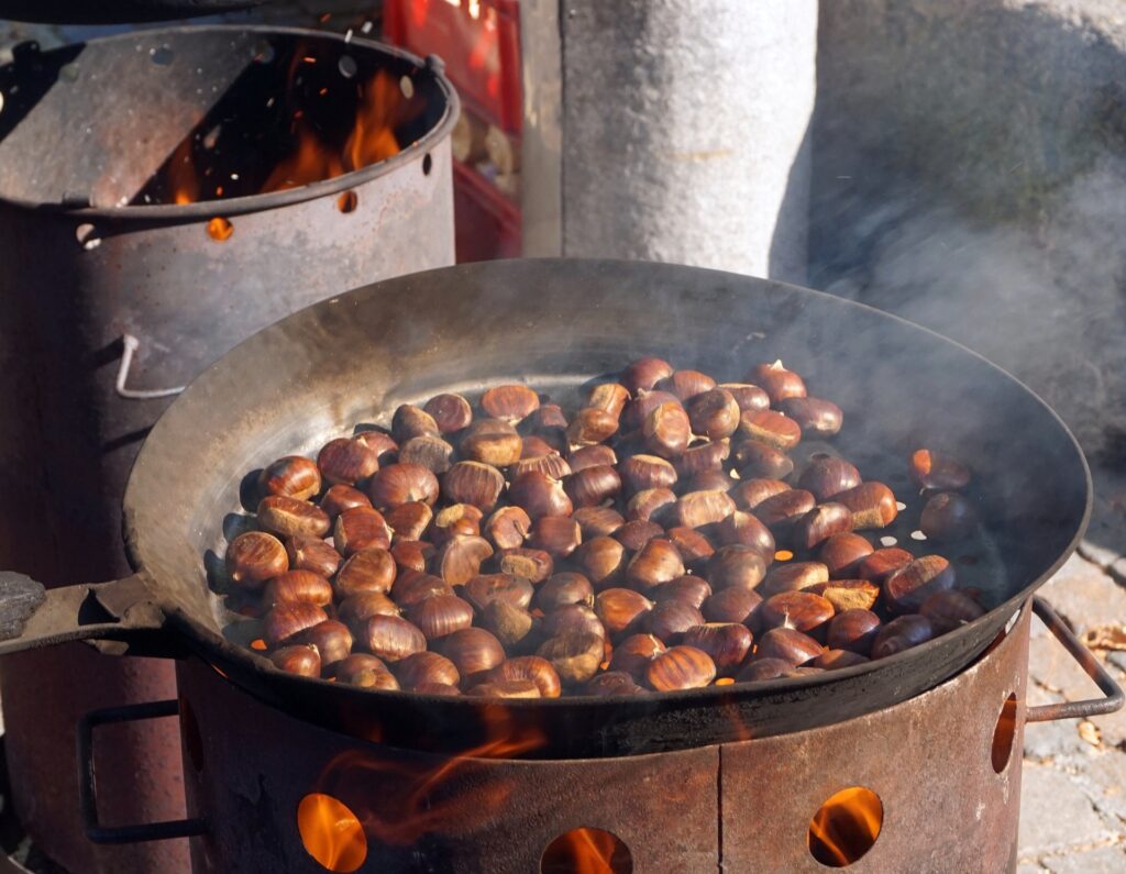 Za one koji uživaju u pečenju na otvorenom, kesteni se mogu peći i iznad žara. Potrebno je 10 do 15 minuta, uz redovito okretanje da ne zagore. Rezultat je aromatičan i pomalo dimljen okus kojem je teško odoljeti.