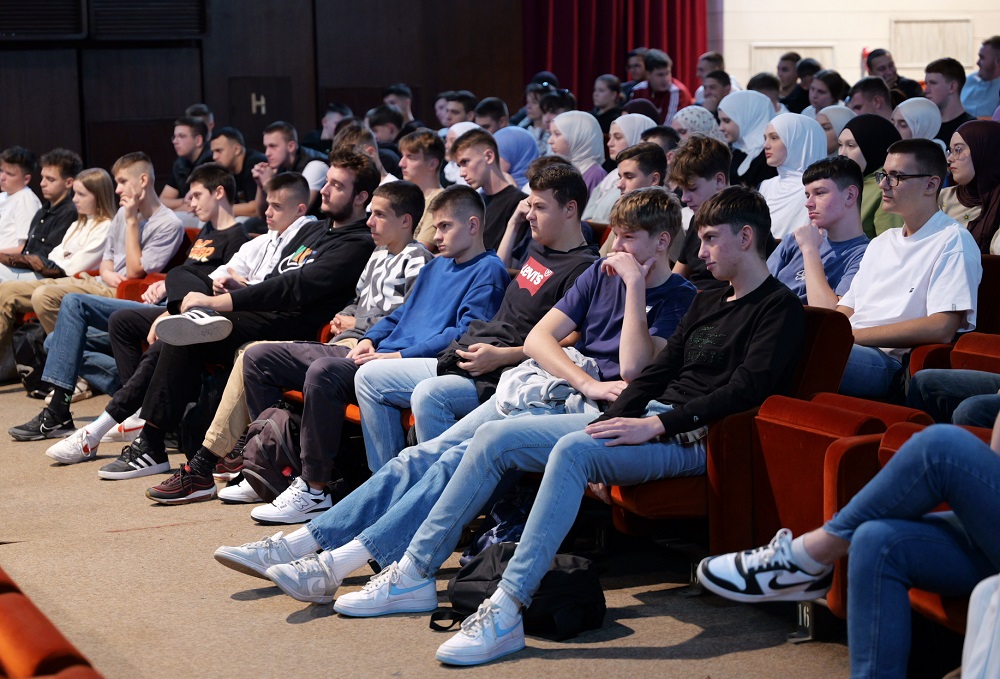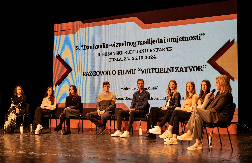 Zanimljiv razgovor o filmu „Virtuelni zatvor“ koji nosi snažnu poruku i ima za cilj razvijanje društvene svijesti o posljedicama prekomjernog korištenja interneta i videoigara, sa učenicima u sali BKC-a odlično je moderirao Adnan Mujkić, koji je bio i jedan od aktivnih učesnika u izradi filma koji je nastao 2018. godine u produkciji Udruženja Mladi Tuzle.