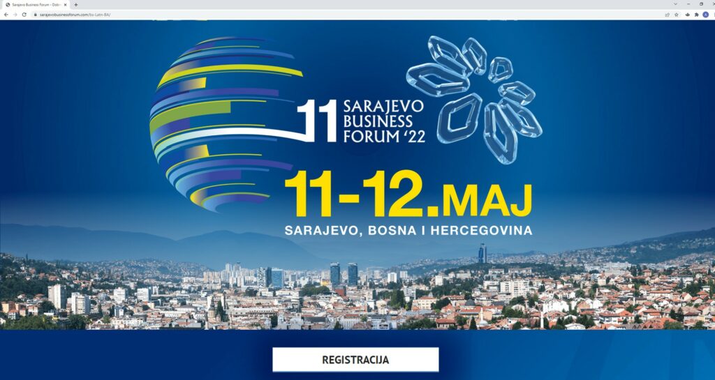 Registracija učesnika 11. Sarajevo Business Foruma (SBF), koji će se održati 11. i 12. maja u Sarajevu, zvanično je otvorena. Zainteresirani za učešće na najvećoj poslovno-investicijskoj konferenciji u regionu, mogu se prijaviti on-line putem web stranice https://sarajevobusinessforum.com, te postati dio najznačajnije poslovne priče u regionu. Sarajevo Business Forum jedanaesti put okuplja najutjecajnije poslovne i političke lidere iz regiona i svijeta, s ciljem prezentiranja poslovnih prilika i mogućnosti ulaganja u Bosnu i Hercegovinu, ali i zemlje regiona: Albaniju, Crnu Goru, Hrvatsku, Sjevernu Makedoniju, Sloveniju i Srbiju.