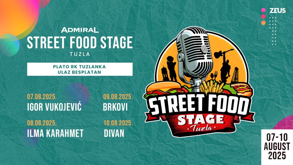 Plato RK „Tuzlanka“ 7. – 10.8. – „Admiral Street Food Stage“ i četiri dana odlične zabave na jednom mjestu. Ulaz na sve programe festivala je besplatan.