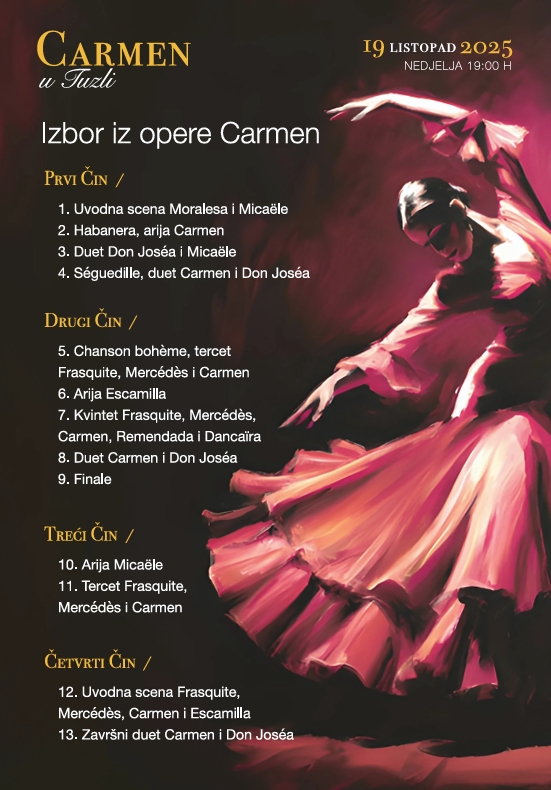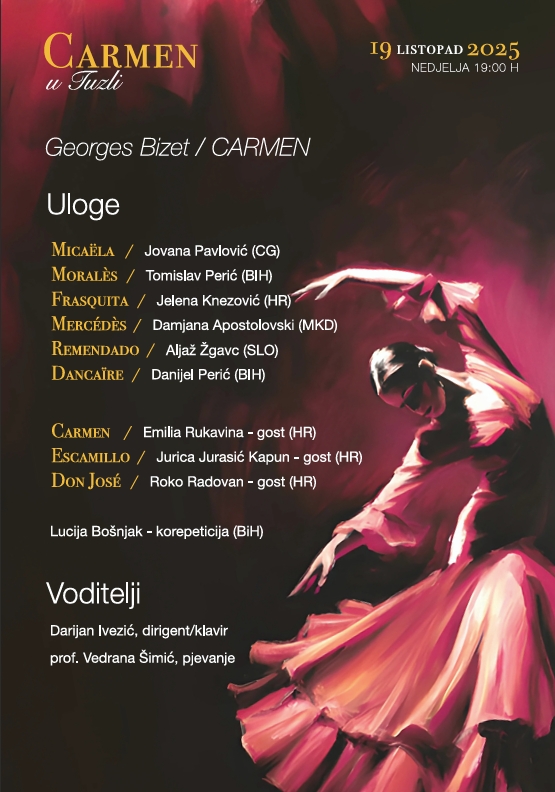 Povodom 150 godina od praizvedbe jedne od najizvođenijih opera svih vremena, Carmen Georgesa Bizeta, Tuzla će imati čast ugostiti svečanu izvedbu ovog bezvremenskog glazbenog djela.