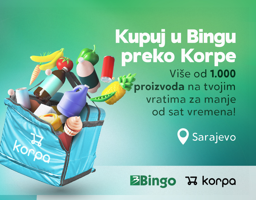 Odlična vijest stiže nam iz Binga, najvećeg trgovačkog lanca u BiH. Od sada iz udobnosti svog doma, možete naručiti više od 1000 proizvoda preko domaće platforme za dostavu, Korpa.ba. Kupcima iz Sarajeva će na ovoj aplikaciji biti dostupne namirnice iz asortimana prehrane, kozmetike, hemije i mnogih drugih. Najveći domaći lanac marketa odlučio je ispratiti i ovaj trend i kupcima pružiti samo najbolje. Na jednostavan, brz i siguran način obavite kupovinu preko Korpa.ba i za manje od sat vremena, narudžba je na vašim vratima.