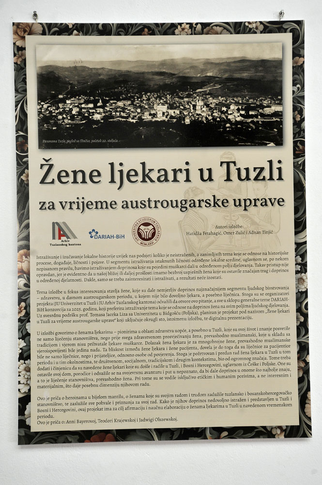 Arhiv TK i Univerzitet u Tuzli su prezentirali stručno- naučni projekat: „Žene ljekari u Tuzli za vrijeme austrougarske uprave“. Održan je okrugli sto i otvorena izložba arhivskih dokumenata. Eminentni stručnjaci iz BiH, Poljske i Hrvatske rasvijetlili su ulogu i doprinos žena ljekara u Tuzli u historijskom periodu kada je ženama bila neophodna zdravstvena zaštita, ali su iz vjerskih razloga i tadašnjih običaja nerado išle kod doktora tako da se dolaskom žena doktorica znatno poboljšala zdravstvena zaštita. Organizovana javna zdravstvena zaštita u Bosni počela je u 18. vijeku. Prva tuzlanska bolnica u narodu poznata kao „Hastahana“ otvorena je 1874. g. Prvi ljekar u Tuzli je bio dr. Mehmed Sami Šerbić. Dolaskom austrougarske vlasti obezbijeđena su sredstva za izgradnju nove bolnice većih kapaciteta ispod naselja Borić i Kojšino. Otvorena je 1886. godine.